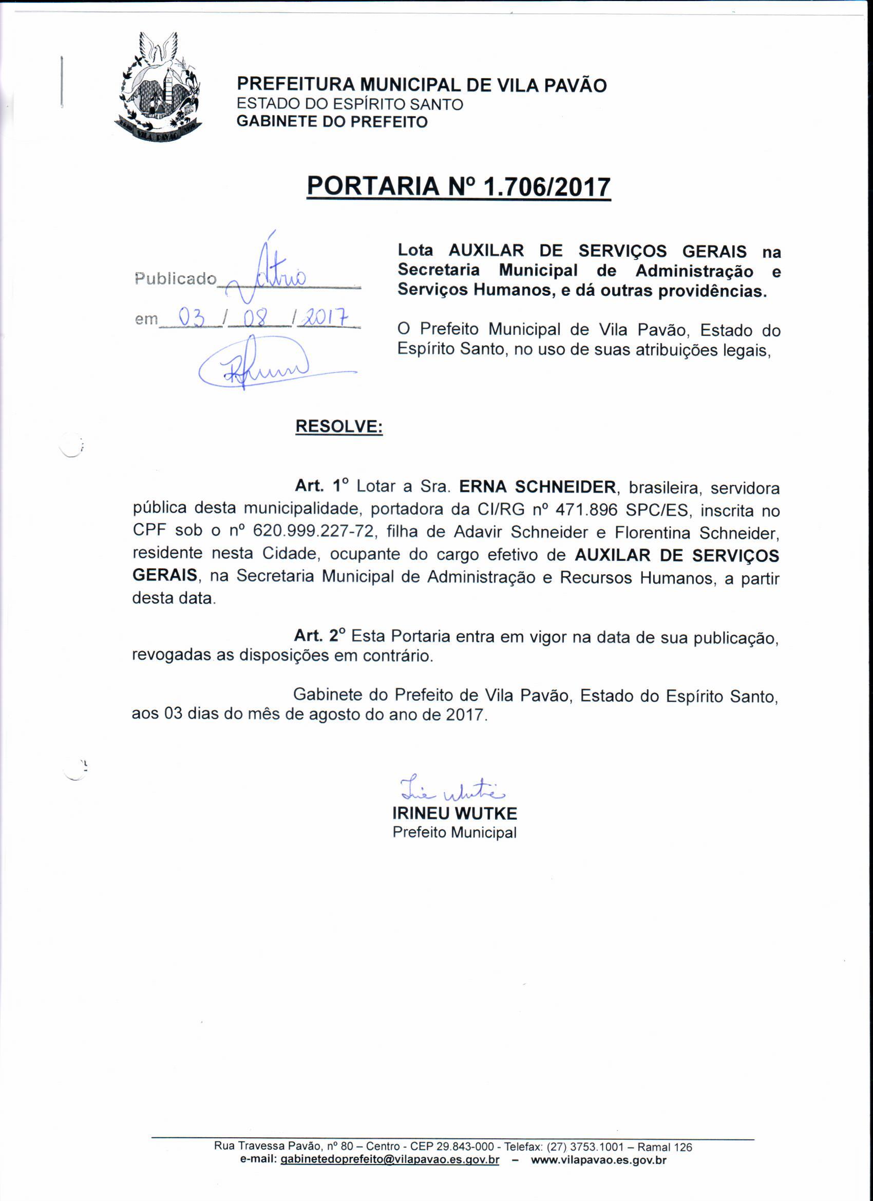 | Ementa: | PORTARIA Nº 1706/2017