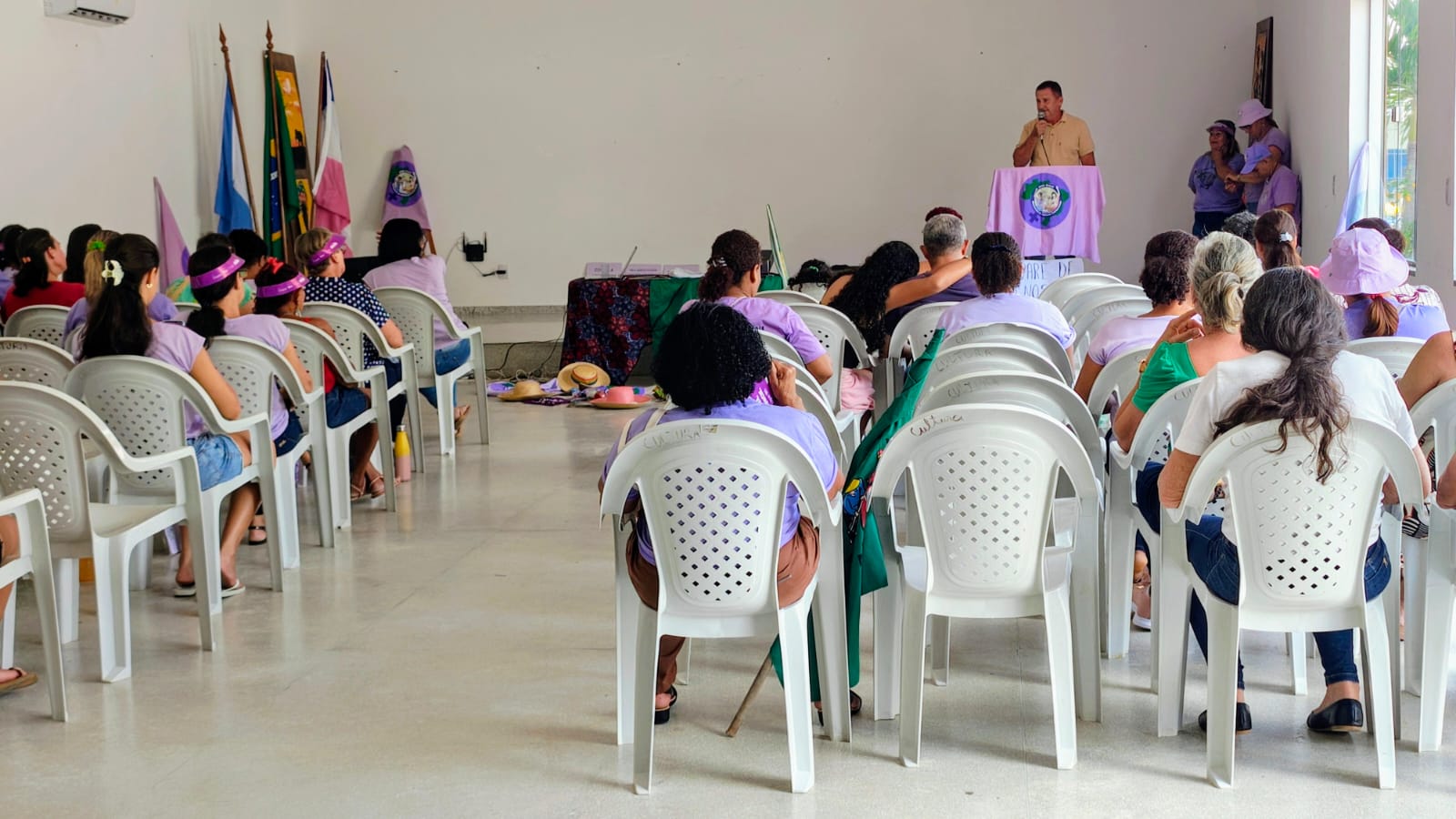 Na sequência, integrantes do MMC compartilharam a trajetória do movimento e relatos de mulheres que, por meio da organização coletiva, conquistaram mais espaço, reconhecimento e autonomia em suas comunidades.