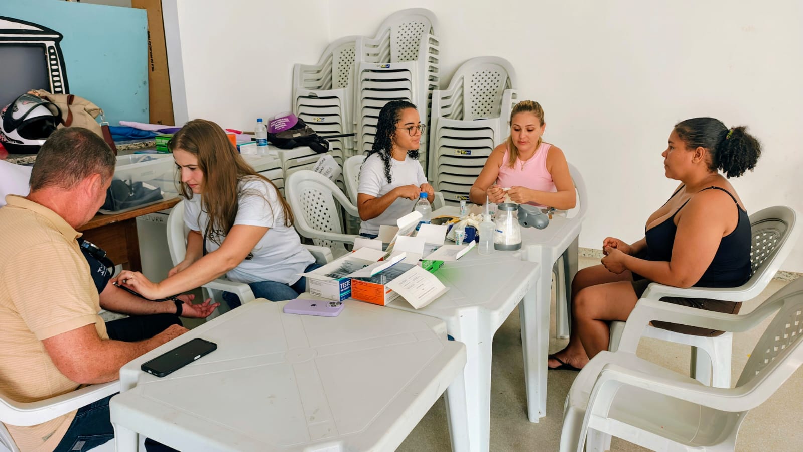 Durante toda a programação, a equipe da Secretaria Municipal de Saúde ofereceu serviços de aferição de pressão arterial, testes de glicemia e testes rápidos, contribuindo também com ações de cuidado e promoção da saúde.