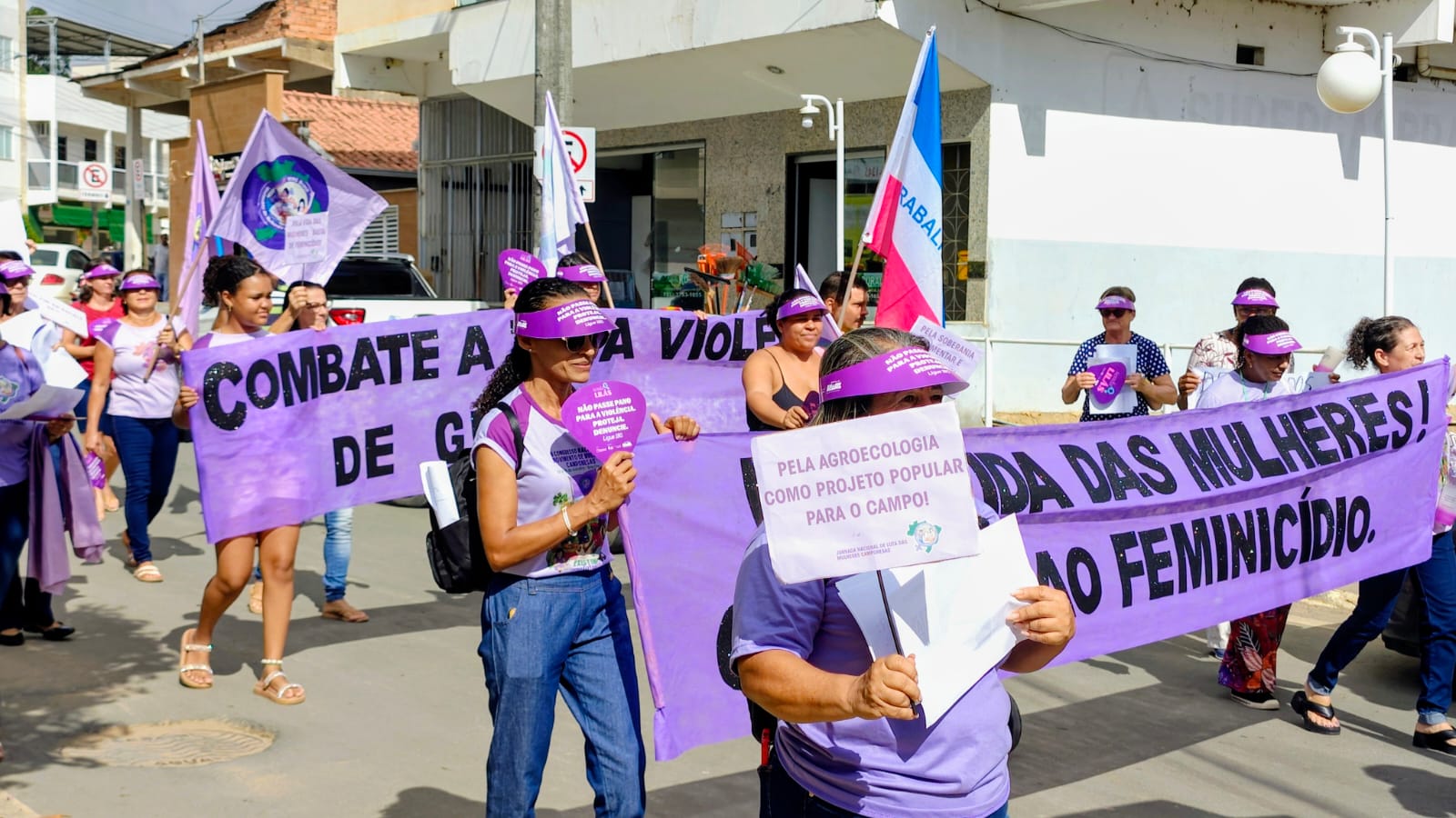 Durante o percurso, foram realizadas paradas para reflexões sobre os desafios ainda enfrentados pelas mulheres em seu cotidiano, com destaque para o combate ao feminicídio e a valorização das mulheres do campo.