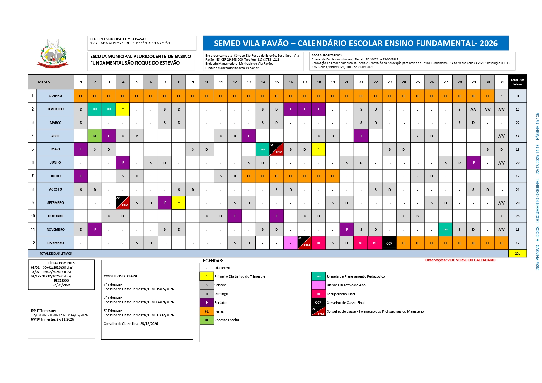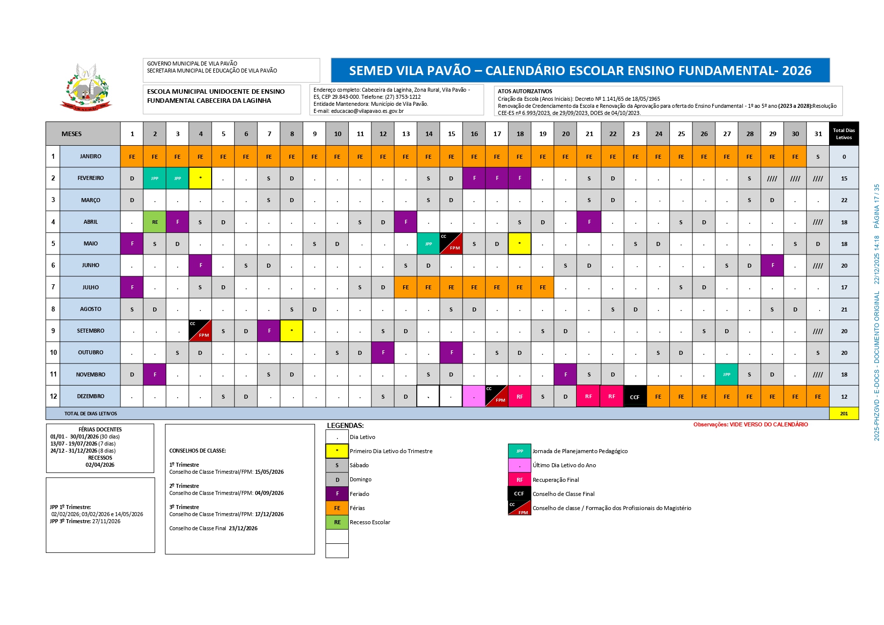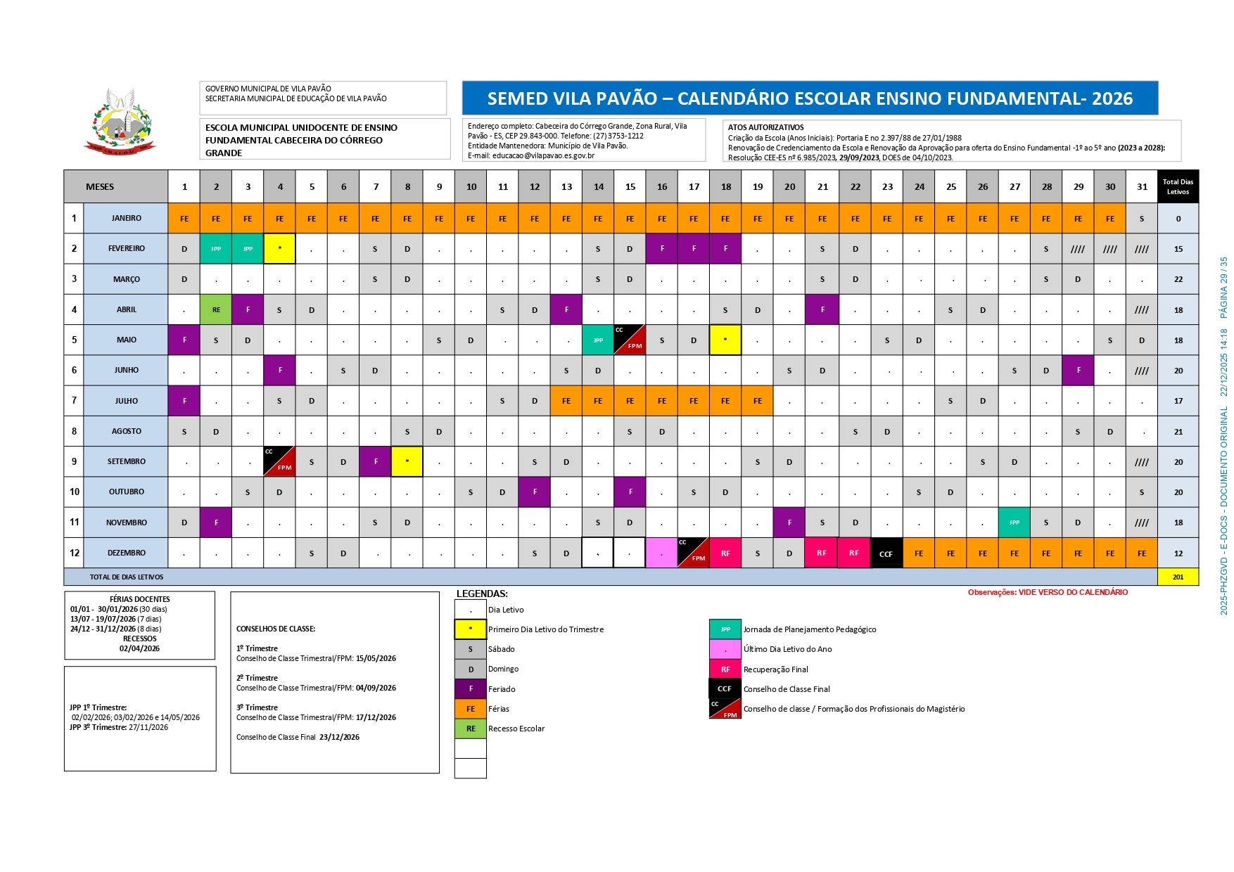 CALENDÁRIO ESCOLAR 2026