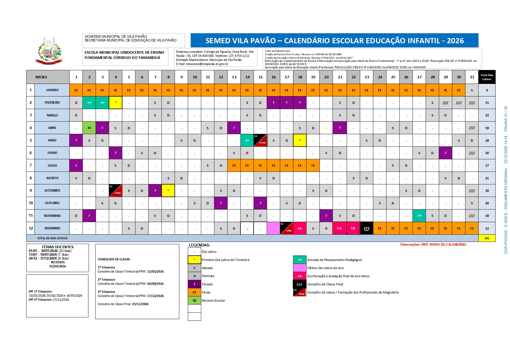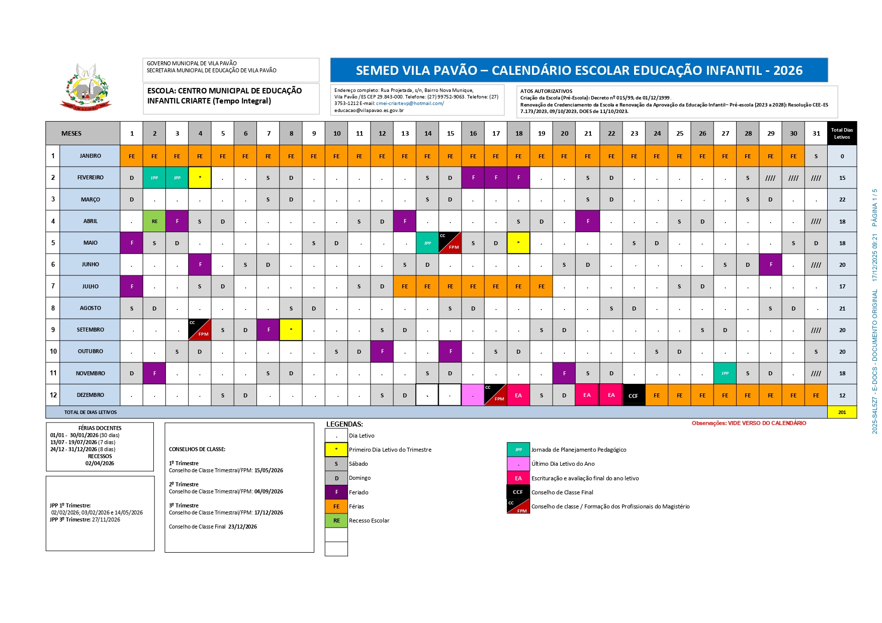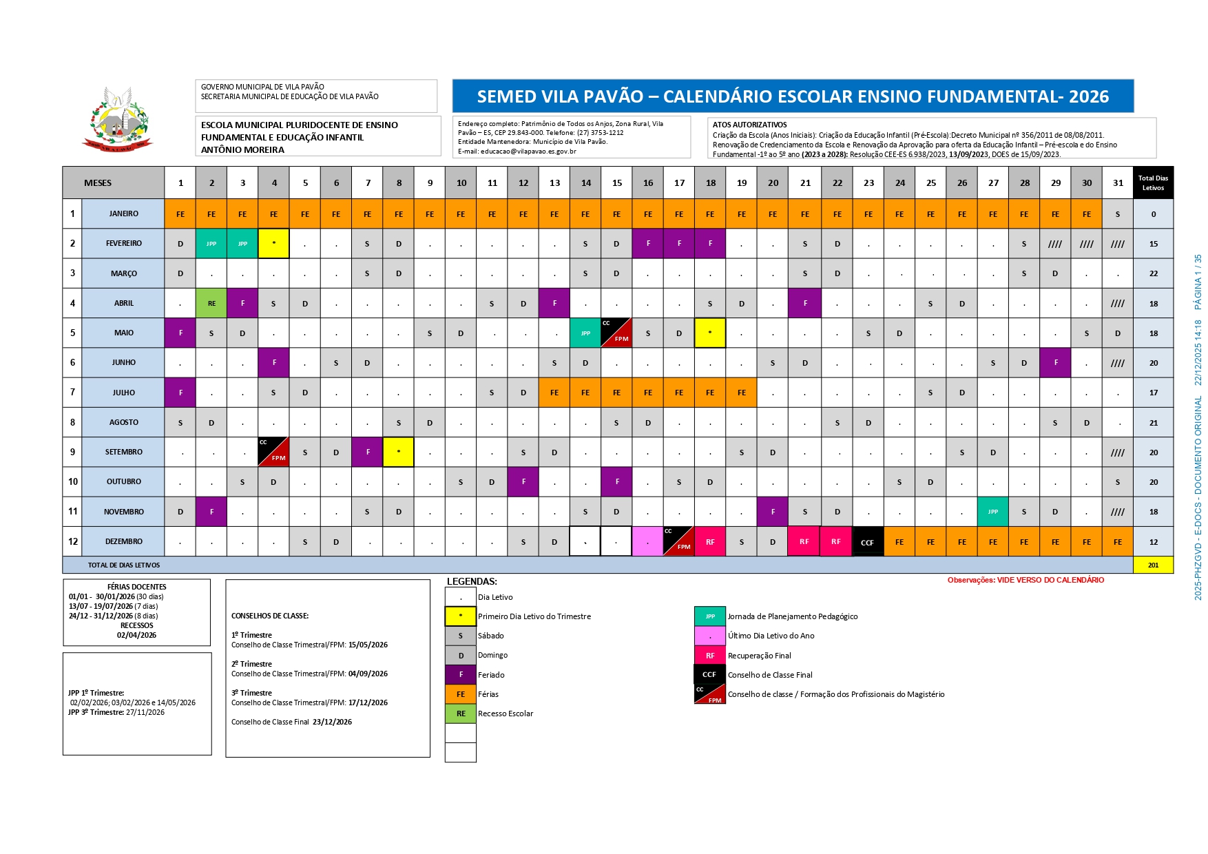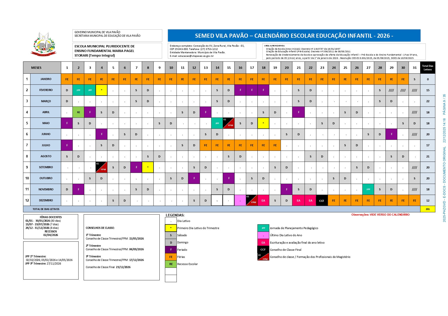 CALENDÁRIO ESCOLAR 2026