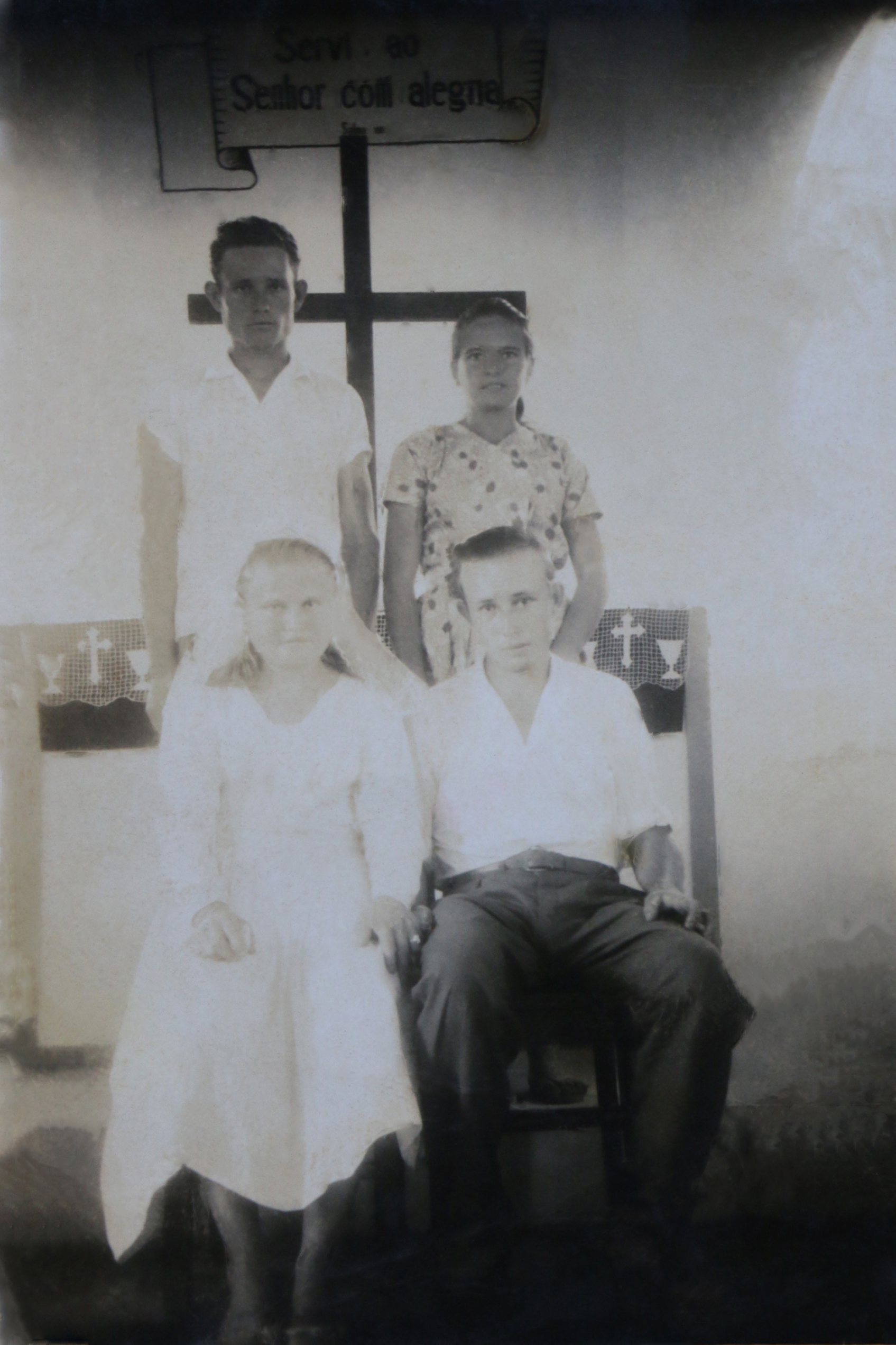 Casamento de Artur e Emilia, ao fundo escola de Vila Pavão Artur Pagung e Família  Família de Artur Pagung